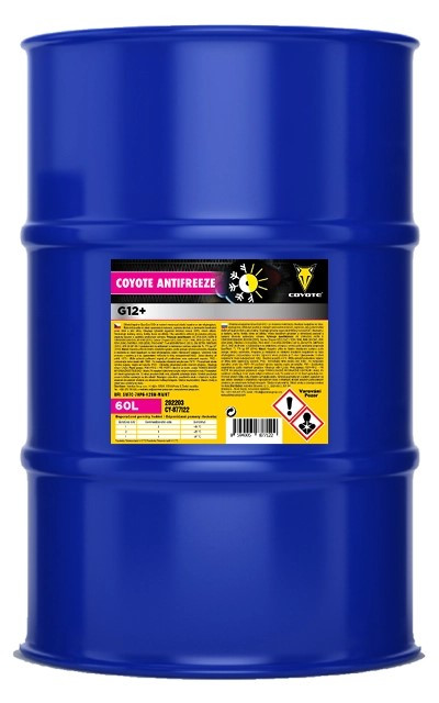 A COYOTE Antifreeze G12+ fagyálló egy kiváló, alacsony dermedéspontú vegyület, amely monoetilén-glikol alapú, és korróziógátló adalékok együttesével van kiegészítve. Nem tartalmaz nitritet, amint, foszfátot, bóraxot vagy szilikátokat. Különösen alkalmas a modern, alumínium és ötvözet hűtőrendszerekkel ellátott belső égésű motorok hűtőihez